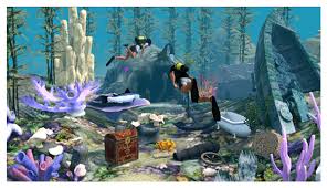 Teraz nasi Simowie mogą nurkowac pod wodą i odkrywac różne cudowne skarby!! Oczywiście do nurkowania potrzebne są odpowiednie strefy!! W The Sims 3 Rajska Wyspa doszedł także rekin oraz kraken!! Kraken może zaatakowac naszego Sima , który pływa na łodzi!! Możemy zakupic naszemu Simowi za punkty szczęścia życiowego ,, przyjaciel Krakena " dzięki temu będziemy mogli wywoływac krakena na łodziach innych simów!! Wracając do kurortów : Gdy nasz sim stanie się właścicielem jakiegoś kurortu może on w nim budowac i dodawac lub usuwac różne zbędne przedmioty!! Mogą oni sprawdzic opinie o kurorcie które napewno pomogą w ulepszeniu kurortu!!Dzięki różnym meblom możemy wybrac styl naszego kurortu jest ich trzy : hiszpański , plażowy oraz nowoczesny. Nasi Simowie mogą także odkrywac różne tajemnicze wyspy!! Przed odkryciem są one zaznaczone chmurami!!